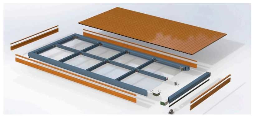 - %100 Alüminyum Alt Strüktür: Sistemin ana taşıyıcı gövdesi tamamen yüksek mukavemetli alüminyumdan imal edilmiştir. Bu sayede yapınız asla paslanmaz, çürümez ve yıllar boyu ilk günkü formunu korur. Çelik konstrüksiyonların aksine, havuz suyuna ve dış etkenlere karşı tam koruma sağlar.