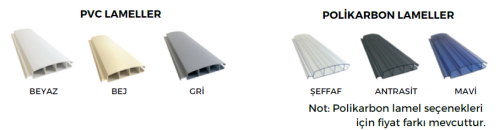 Kurulumu basit ve hızlıdır. Marquise, açık gri bir taban yapısına ve beyaz, açık gri, gri veya kum rengi seçenekleriyle değiştirilebilir kaplamalara sahiptir. Lameller ise beyaz, bej ve gri renk seçenekleriyle kişiselleştirilebilir. Ayrıca şeffaf, antrasit ve mavi polikarbon lamel seçeneklerimiz de bulunmaktadır.